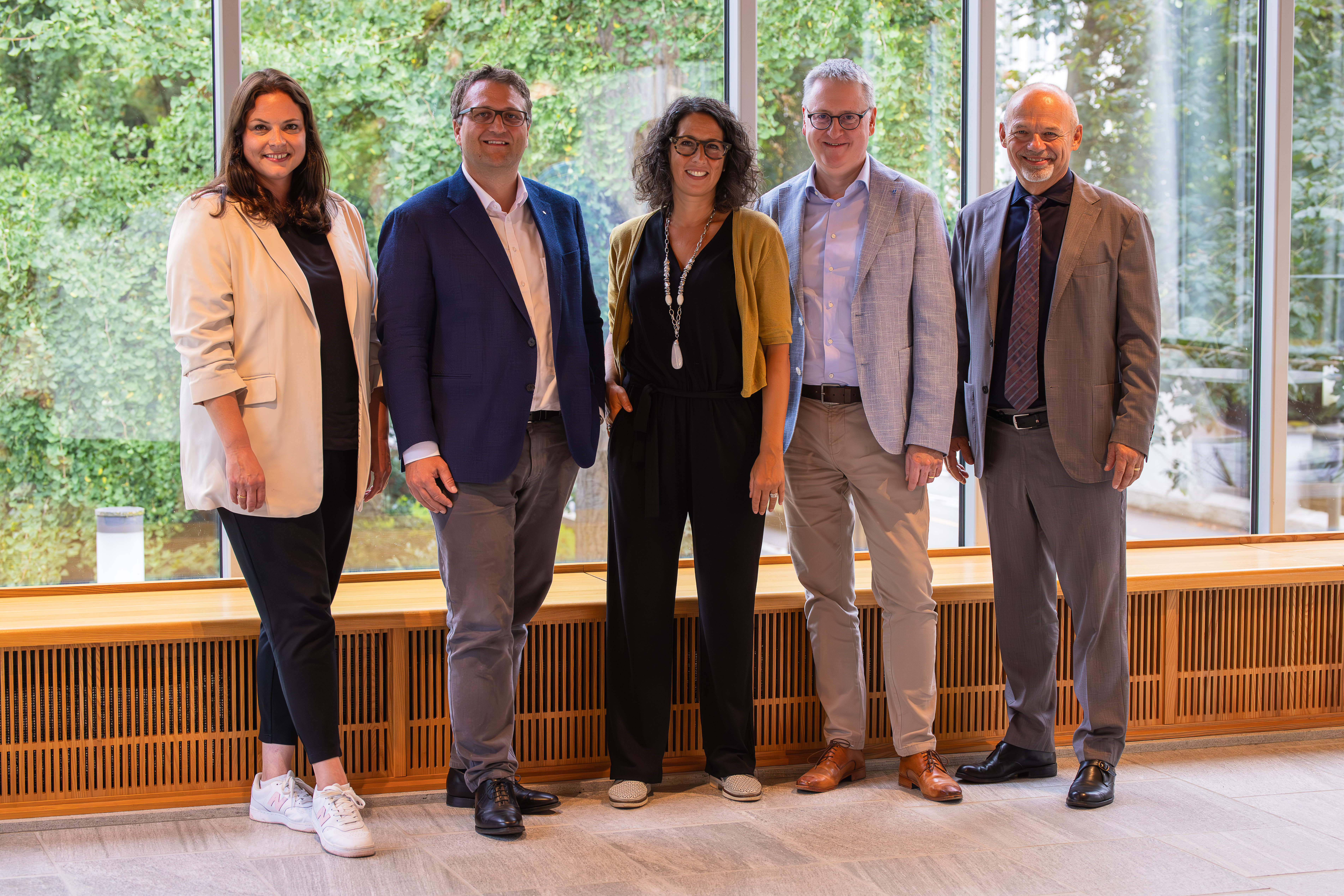 Bildlegende: v. l. Lara Albanesi (Präsidentin), Josef Bütler, Mario Okle (Delegierter des VR), Jörg Krummenacher, Jasmina Ritz (Vize-Präsidentin)