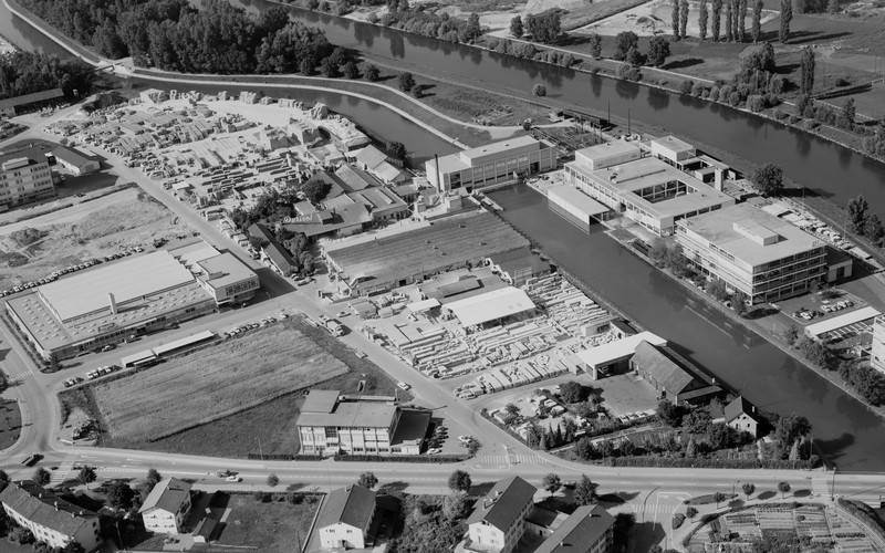 Foto: ETH-Bibliothek 1964, Auf dem heutigen Limmatfeld produzierte die Firma Rapid Landmaschinen.