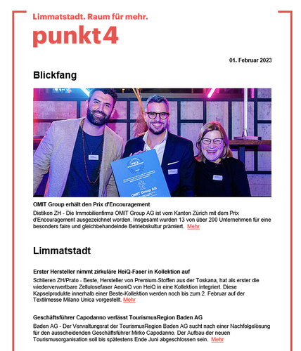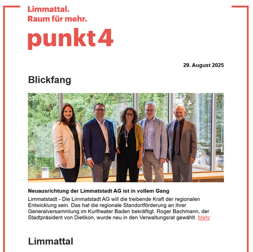 Werktäglicher Newsletter zu den Aktivitäten der Limmattaler Wirtschaft