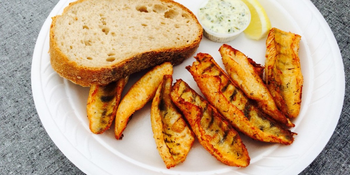 Nebst frischen Fischchnusperli in Bierteig sind Würste vom Grill, Pommes Frites und selbstgebackene Kuchen sowie alle Arten von Kaffee im Angebot.